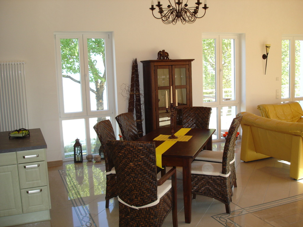 fertiggestellt. Insgesamt steht im 2. OG eine möblierte Wohnfläche von ca.135 m², bestehend aus einem großen Wohnraum mit voll ausgestatteter Einbauküche (Cerankochfeld, Backofen, Kühl- und